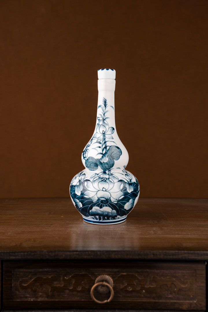 Nậm rượu hồ lô S1 Chàm cổ Lam Huế Sen